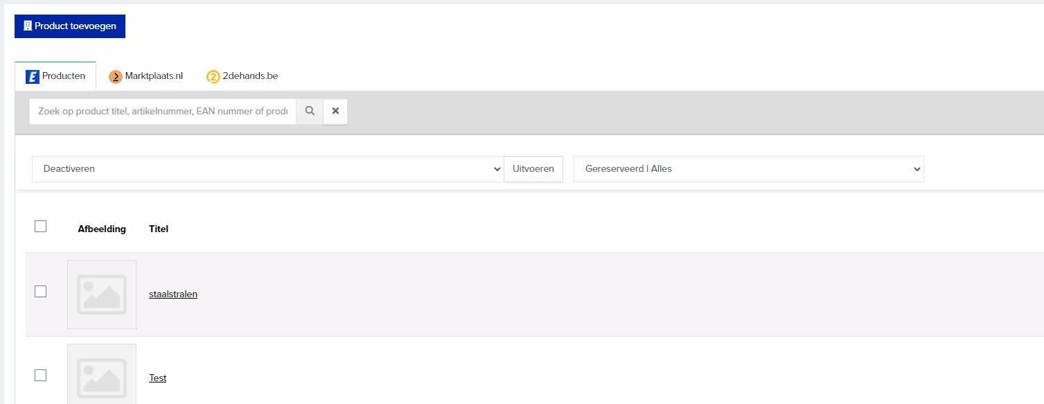 The products page where you can add and/or post products to Marktplaats.nl and 2ehands.be.