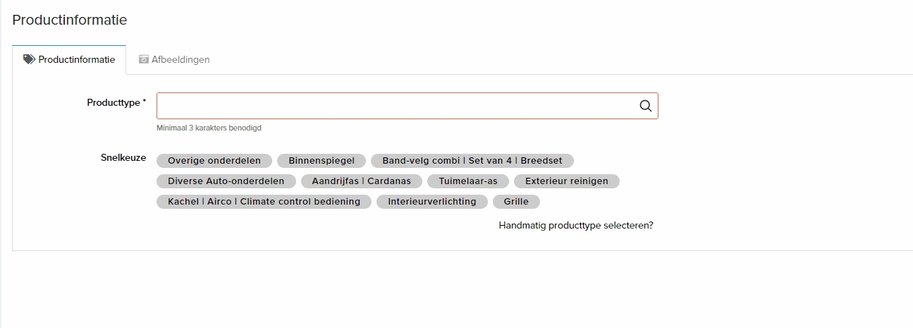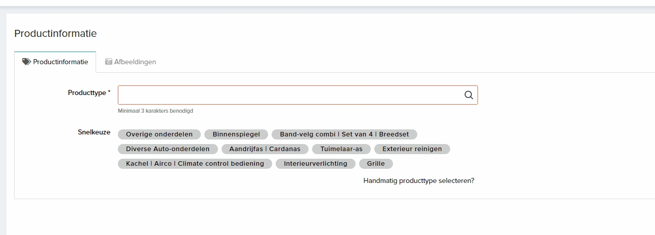 Make, model and type: Here, you can select whether the product is specific to a particular make and model of car. When you indicate this for a product, customers in your webshop can search for the products by entering a license plate number.