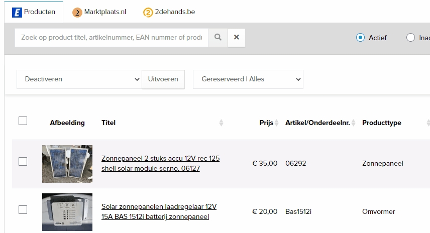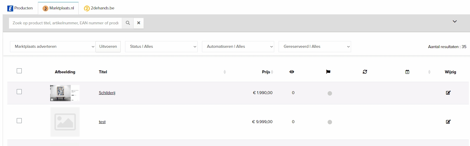 Advertise on Marktplaats: By selecting one or more products and then choosing to advertise in Marktplaats, you can forward your ads to Marktplaats. This works the same for 2ndhands, but then it says advertise 2ndhands.