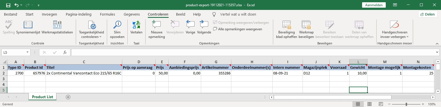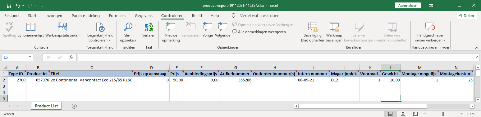 Na het exporteren kan je in het Excel bestand de prijs, titel, aanbiedingsprijs etc aanpassen en vervolgens weer op slaan. Zo kan je gemakkelijk meerdere producten aanpassen.